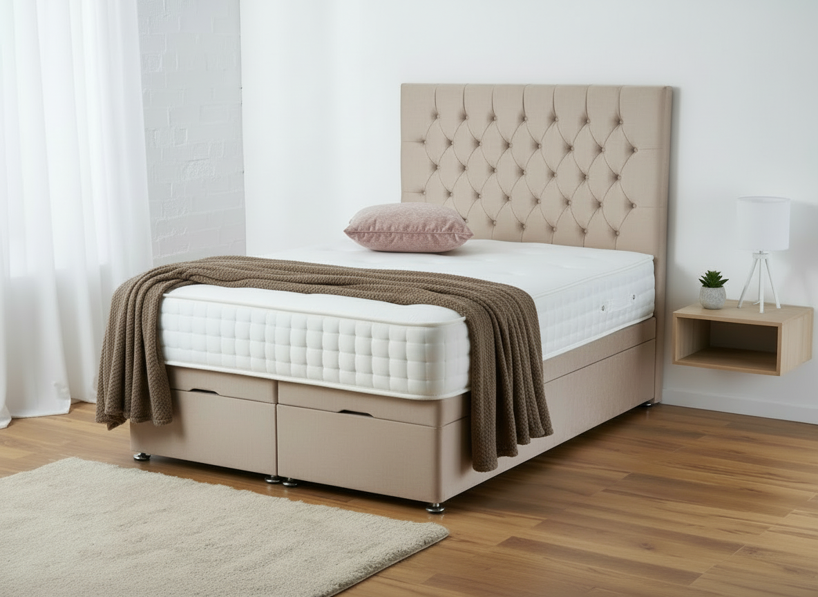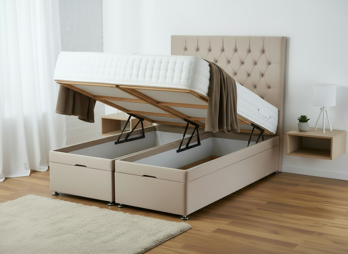 Elevate your bedroom with the 5 Panel Ottoman Storage Divan Bed With Headboard, a beautifully designed bed that blends contemporary style with intelligent functionality. The five-panel headboard offers a clean, structured aesthetic, creating a sophisticated focal point that enhances both modern and classic interiors.
