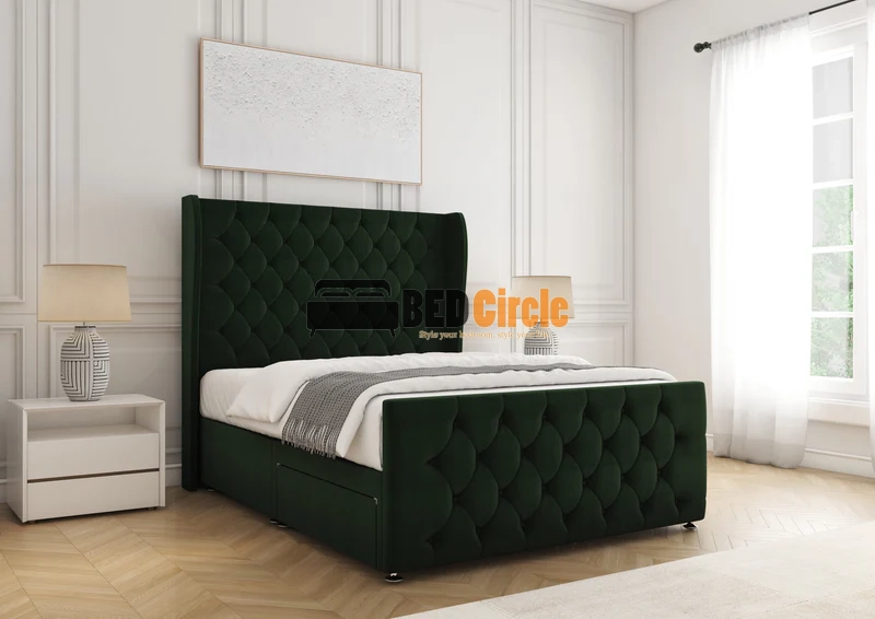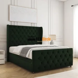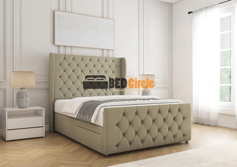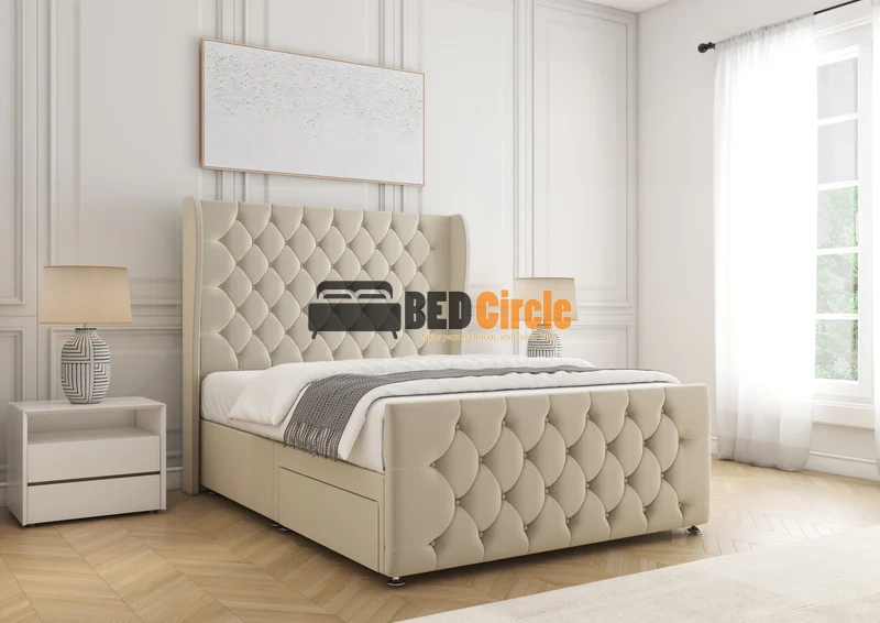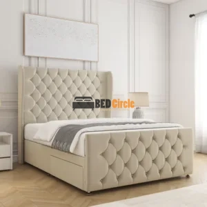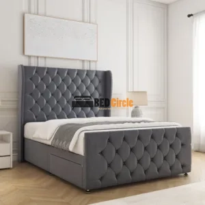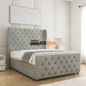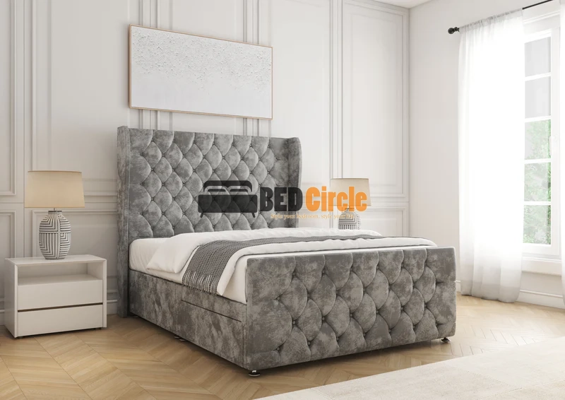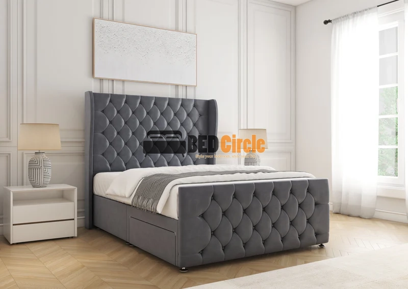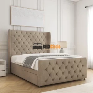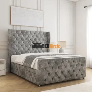 The Anna Divan Bed offers bespoke comfort with contemporary style. Featuring a 12″ divan base, sleek chrome legs, optional storage drawers, and customizable headboards, it’s handcrafted in the UK, available in a variety of luxurious fabrics and colors, and comes with a 24-month warranty.