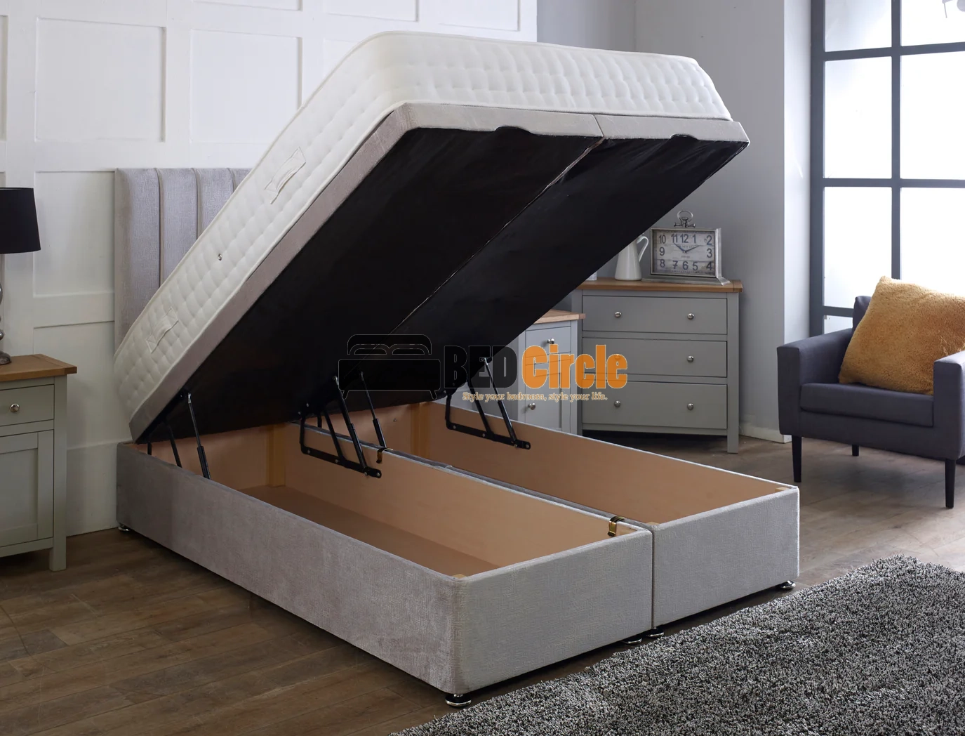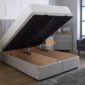 The bed’s gas-assisted ottoman lift system opens smoothly to reveal a generous 23cm internal storage compartment, ideal for bedding, seasonal clothing, and bedroom essentials. With the option of a side lift or end lift, the Apollo bed adapts effortlessly to any room layout, making organisation both simple and stylish.