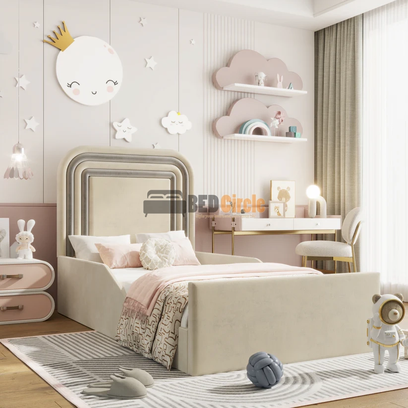 With its soothing curves, premium upholstery, and dependable craftsmanship, the Dreambow Kids Bed is the perfect choice for parents seeking a stylish, safe, and comforting sleep solution for their child.