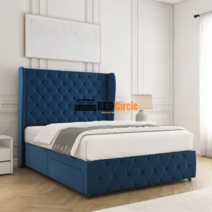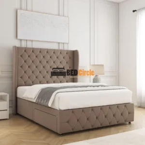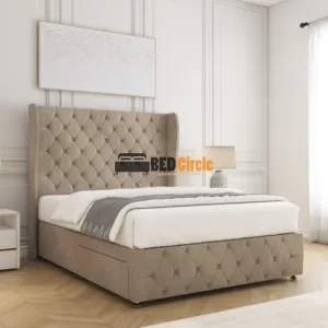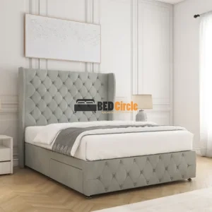 The Faye Divan Bed combines bespoke comfort with contemporary style. Featuring a 12″ divan base, sleek chrome legs, optional storage drawers, and customizable headboards, it’s handcrafted in the UK, comes in a range of luxurious fabrics and colors, and is backed by a 24-month warranty.