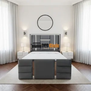 The Leone Luxury Bed brings together refined craftsmanship, elegant design, and everyday practicality. Its fully upholstered frame and tall, padded headboard provide a sophisticated focal point, while the solid construction ensures long-lasting durability.