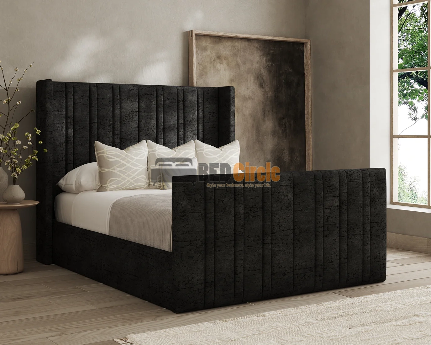 Tall winged headboard for a luxury finish