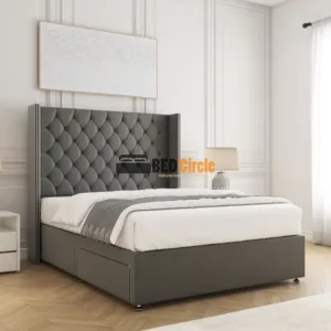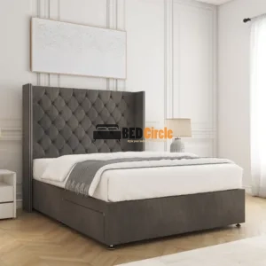 The Olivia Divan Bed blends timeless style with modern practicality. Handmade in the UK and custom-made to order, it features a sturdy 12″ divan base with chrome legs, optional storage drawers, luxurious fabric options, and a 24-month warranty for complete peace of mind.