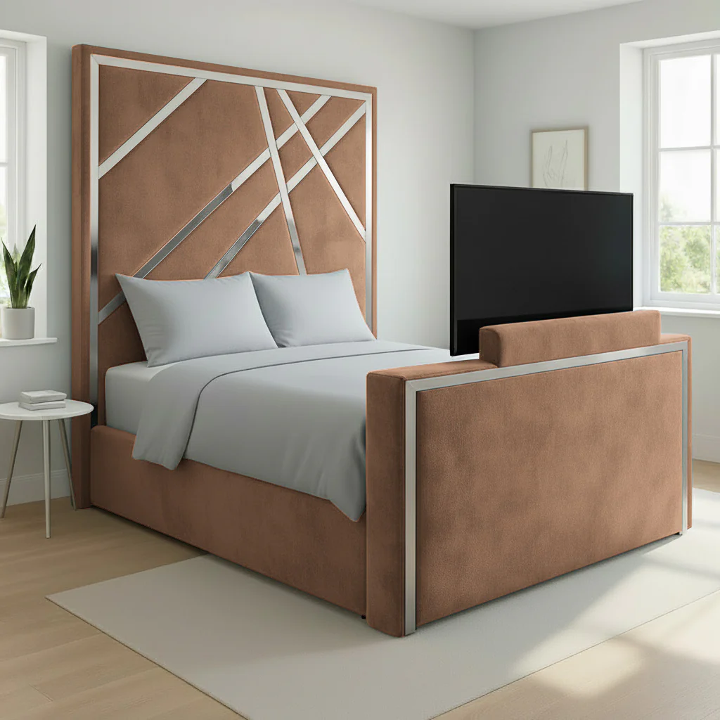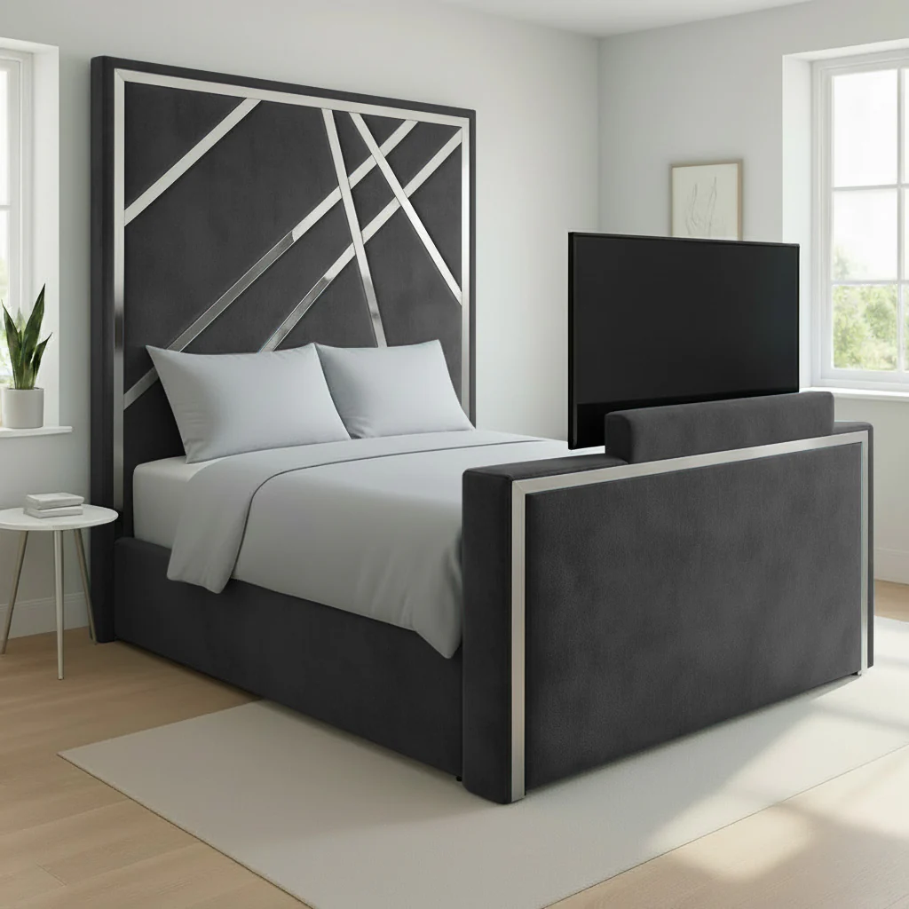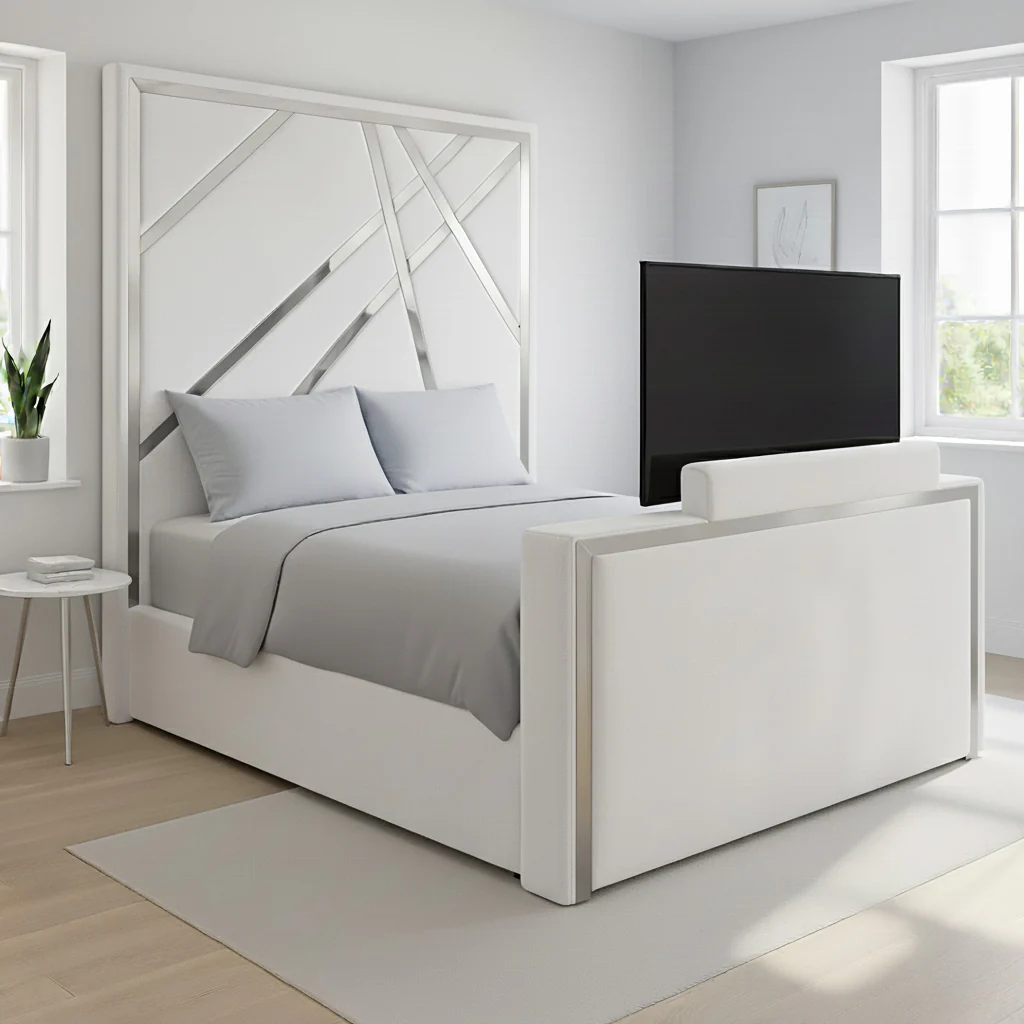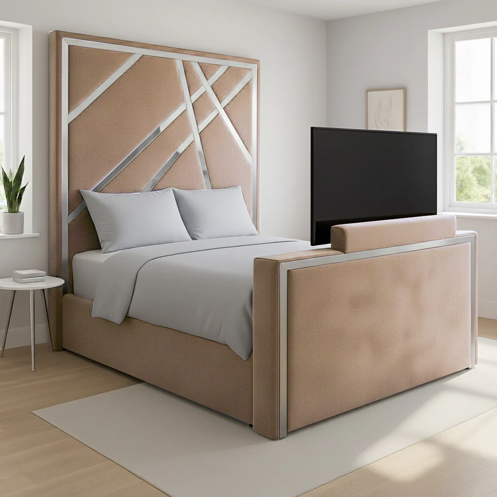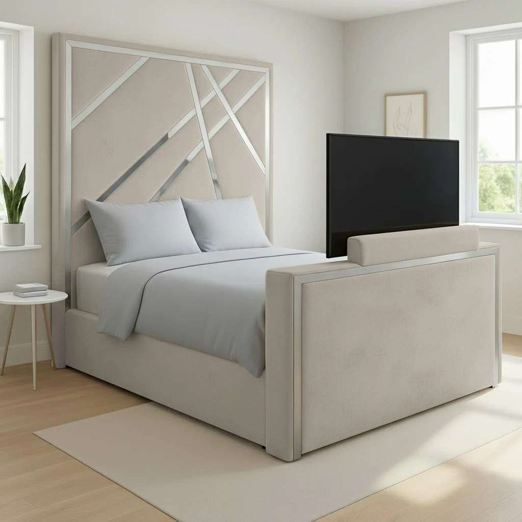 The AQ Beds Simon TV Bed is designed for those who want to elevate their bedroom into a relaxing entertainment space without compromising on style or comfort. Expertly handmade in the UK, this contemporary TV bed features an integrated TV mount housed within the headboard, creating a clean, streamlined look while keeping entertainment effortlessly within view.