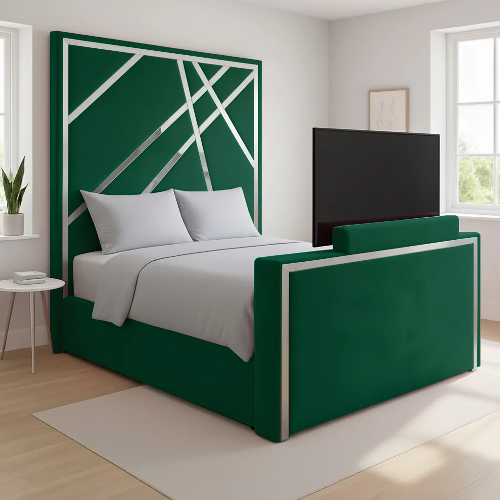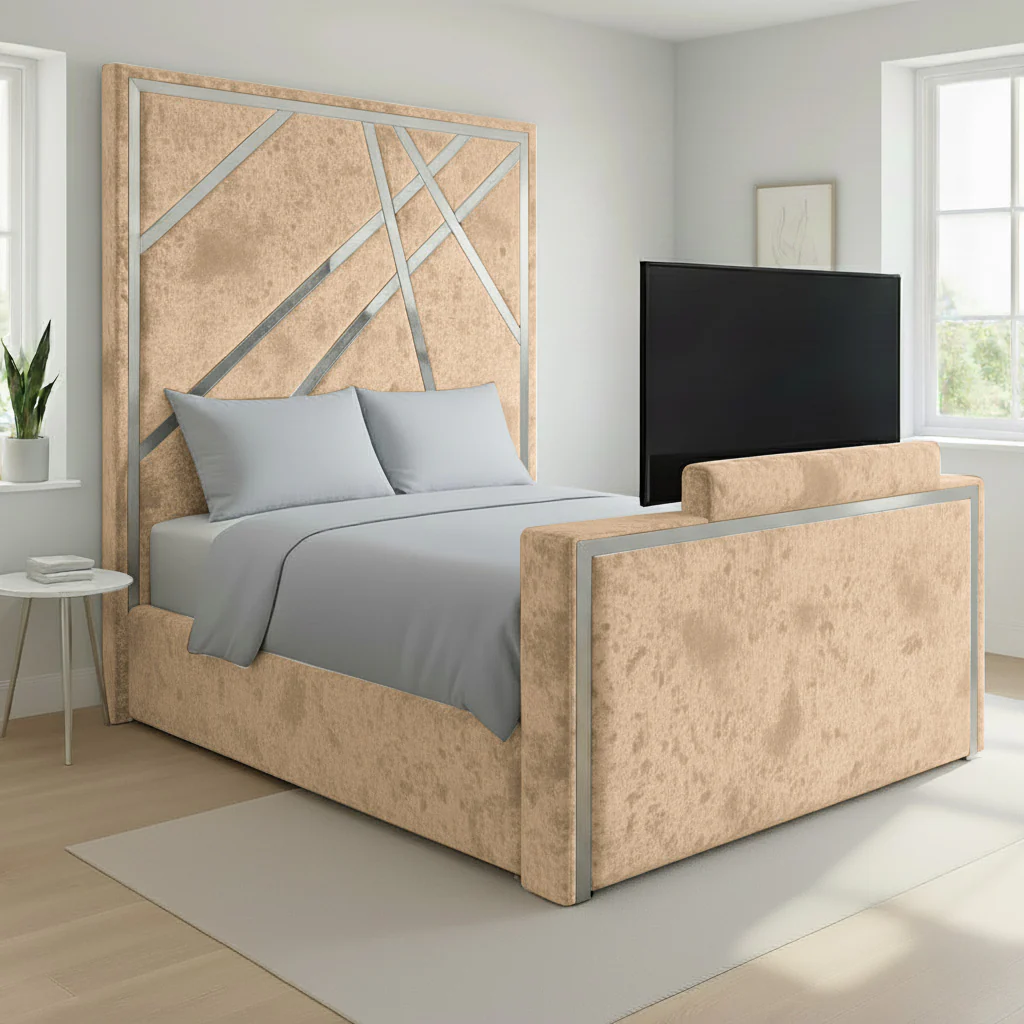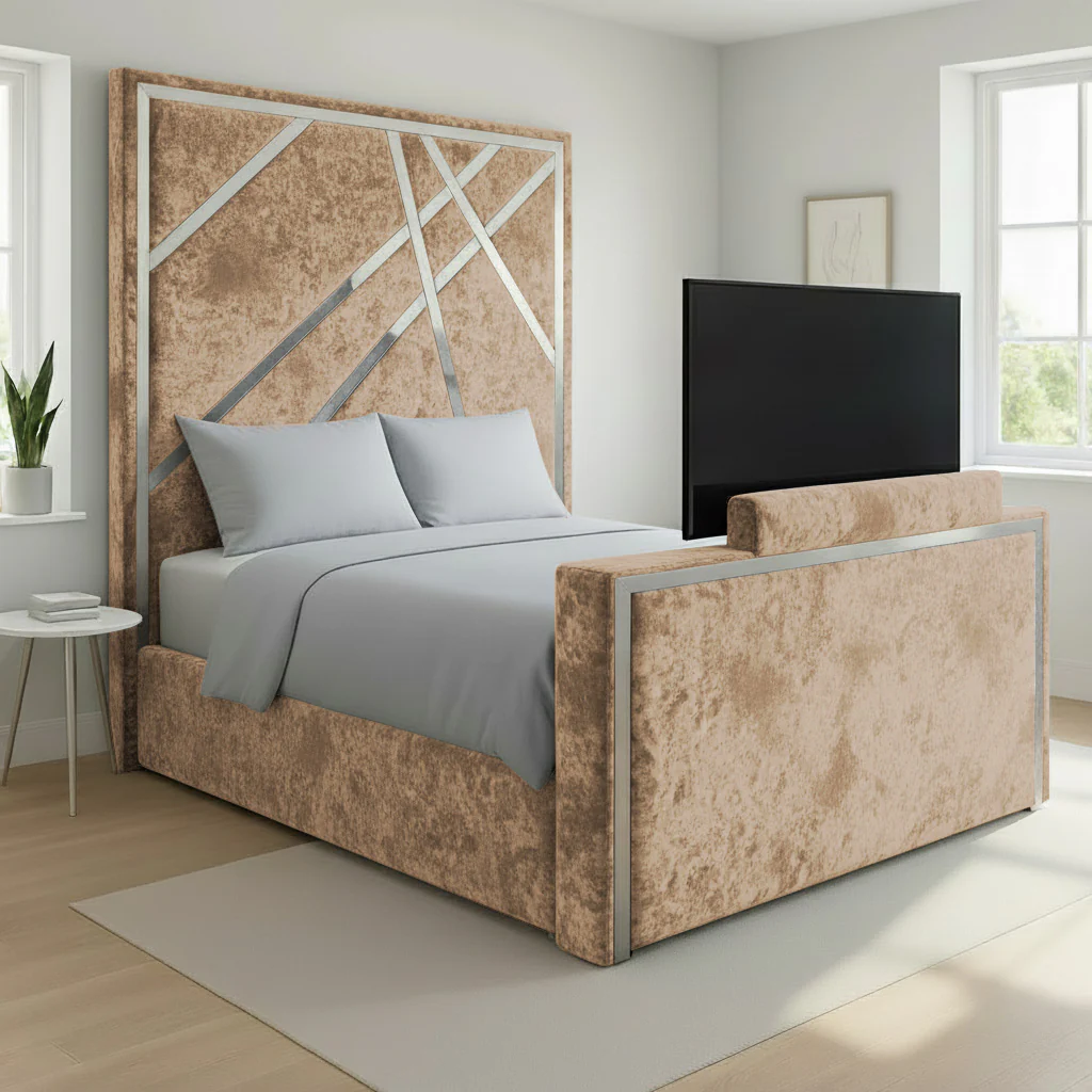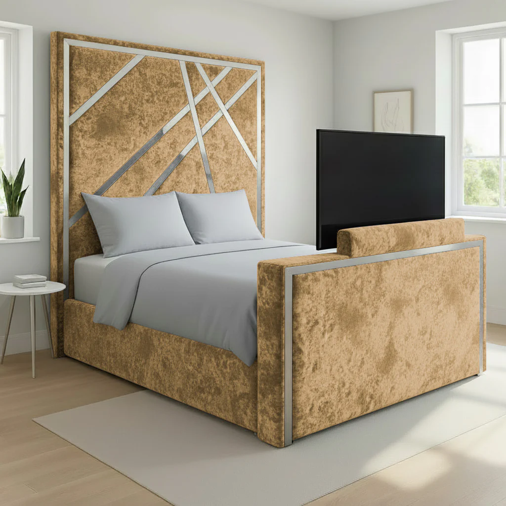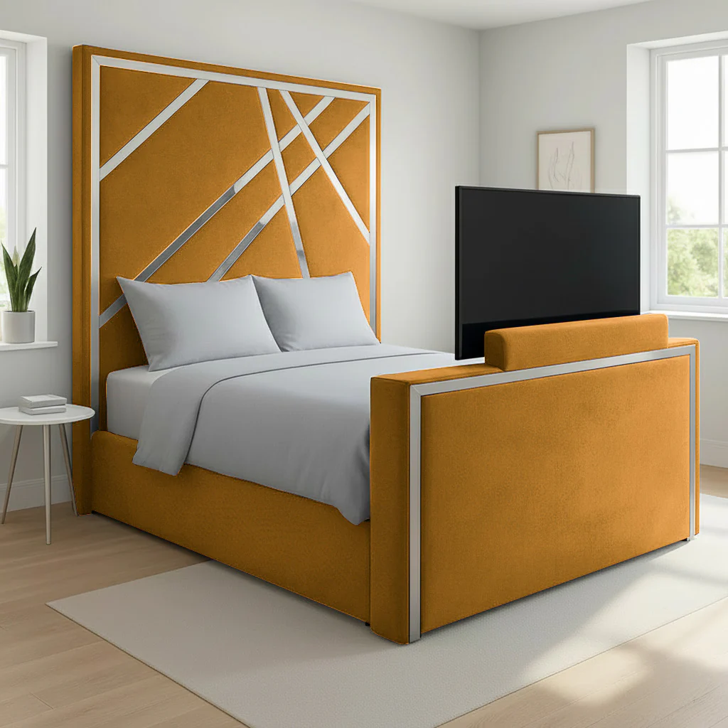 The AQ Beds Simon TV Bed is designed for those who want to elevate their bedroom into a relaxing entertainment space without compromising on style or comfort. Expertly handmade in the UK, this contemporary TV bed features an integrated TV mount housed within the headboard, creating a clean, streamlined look while keeping entertainment effortlessly within view.